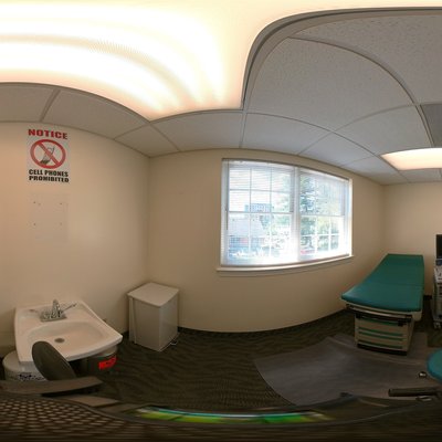 Six exam rooms, two bathrooms (one with shower), lab, doctor’s office, two entrances, breakroom/conference room, large reception area/intake